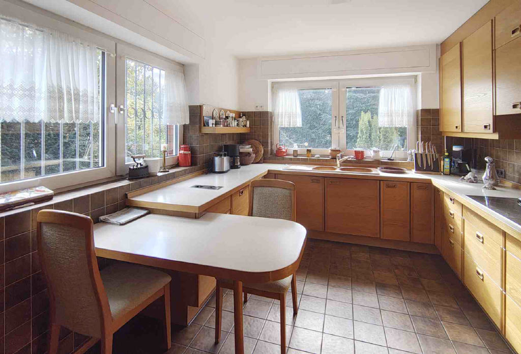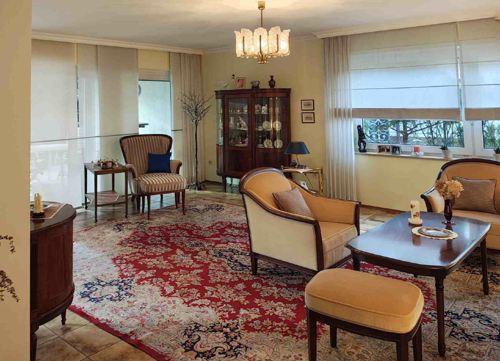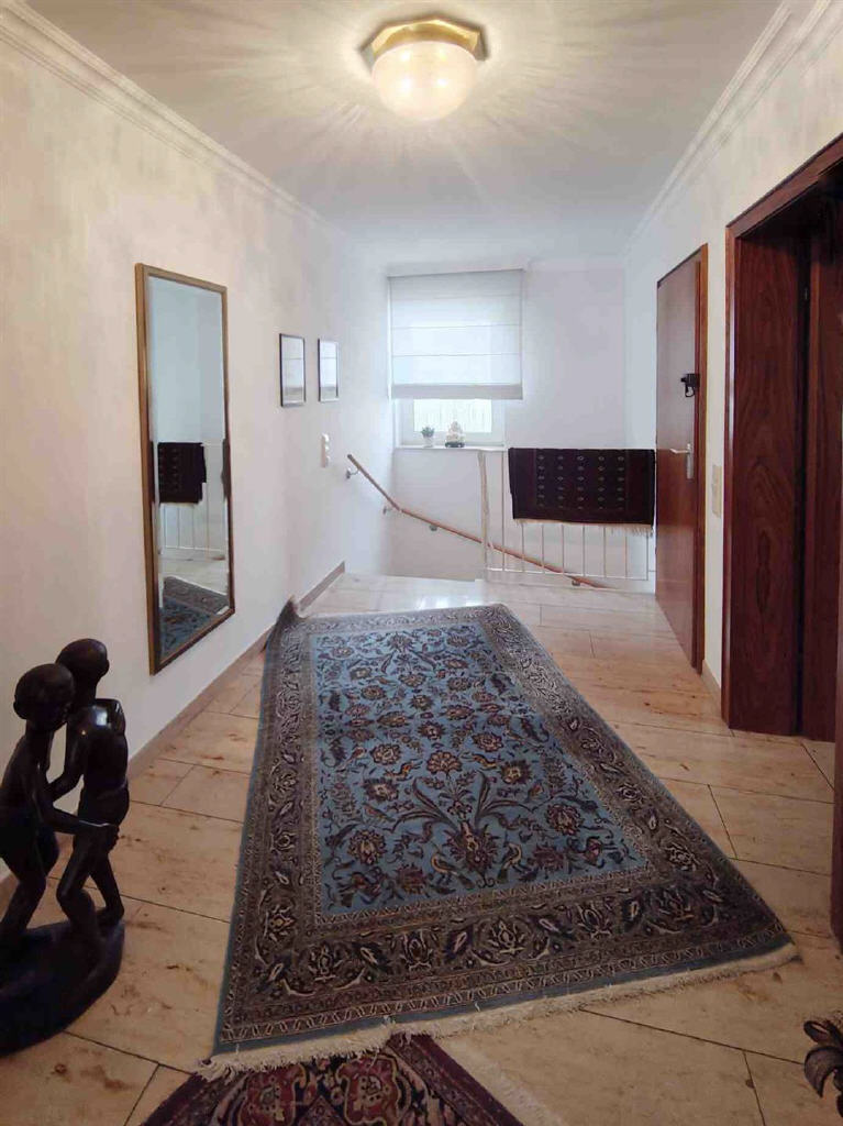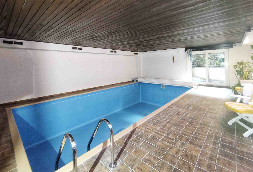 Das sehr großzügige freistehende Zweifamilienhaus ist voll unterkellert. Die Wohnung im EG mit ca. 130 m² Wohnfläche sowie Innen- und Außenkamin ist hochwertig ausgestattet. Die zweite Wohnung im Obergeschoss (separates Treppenhaus) verfügt über ca. 114 m² inkl. großzügiger Loggia . Diese Wohnung wurde in 2024 umfangreich modernisiert und wartet auf einen "Erstbezug". Im Falle der Vermietung könnte man hierdurch grob 1/3 der Zinsbelastung für das gesamte Objekt decken zzgl. evtl. Steuervorteil. Noch interessanter wäre evtl. eine Aufteilung in 2 oder 3 Einheiten (Teileigentum). Zusätzlich sind im Souterrain 3 Büroräume und ein Hausarbeitsraum mit Tageslicht vorhanden (überall Fußbodenheizung). Besonders hervorzuheben ist eine Schwimmhalle im UG mit einem ca. 7,5 x 4 m großen Becken und kleiner Sauna. Inkl. der Schwimmhalle umfasst das Haus über 350 m² Wohn- Nutzfläche. Einige der besonderen Details können Sie den Fotos entnehmen, den richtigen Überblick bekommt man aber erst durch die Besichtigung.